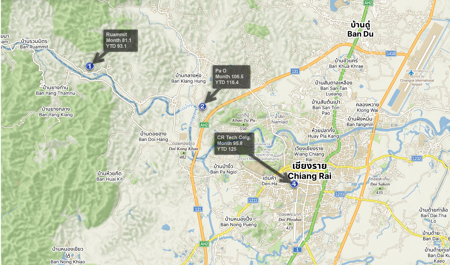Rainfall readings from THREE different PWS last month. Click here to view Chiang Rai Province data.